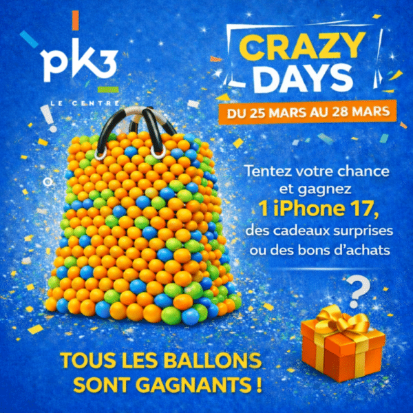 Votre centre commercial PK3 est enchanté de vous annoncer l’arrivée tant attendue des soldes d’hiver, qui débuteront dès le 10 janvier pour se prolonger jusqu’au 6 février 2024. Découvrez toutes nos promotions et remises exceptionnelles, pour une expérience shopping unique.